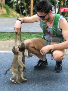 La Monkey Hill es bastante peculiar, y no solo por los monos, sino porque se trata de un camino que sube hasta la cima de un monte, empinadísimo, y que tiene unos 3km de longitud. Curiosamente muchísimos tailandeses vienen aquí a hacer deporte, caminar o incluso correr! Y para nuestra sorpresa arriba del todo había un gimnasio en plena calle. Quien quiera ponerse en forma… ya sabe! Vaya paliza 😅.