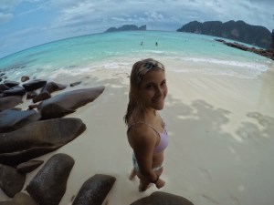 Segunda parada, Loh Moo Dee Bay, una playa de palmeras altísimas, agua clarísima, arena blanquísima y más lisa que un plato, una gozada vamos! Hemos aprovechado para hacer un pequeño entrenamiento y después, al agua!
