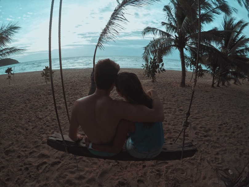 La playa a la que hemos llegado se llama Mae Haad, en la zona norte de la isla, y mola porque es bastante larga, llena de palmeras y además tiene una pasarela que la une con una islita cercana, llamada Ko Ma.