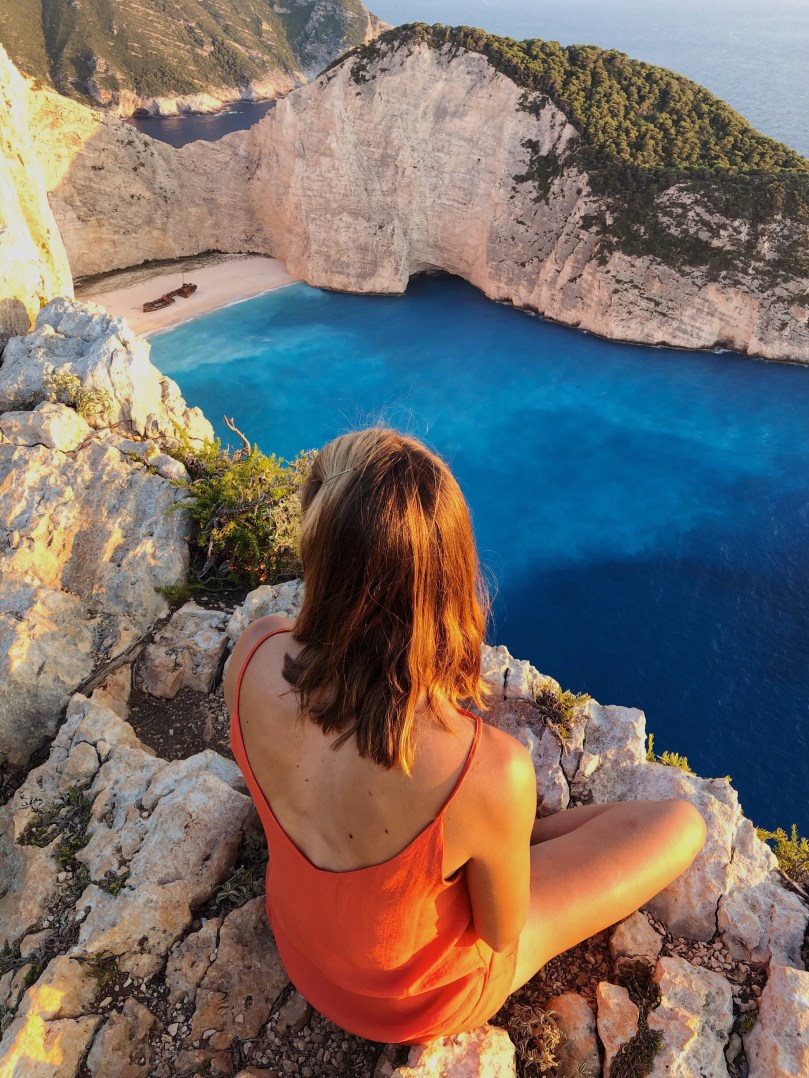 Como veis, hay un barco varado en la playa. Se trata de una naviera que naufragó en los años 80 durante una persecución policial, ya que se trataba de un barco de contrabando de tabaco perteneciente a la mafia italiana. Otra versión habla de que es un montaje del gobierno griego, que colocó el barco allí y difundió imágenes del impresionante paisaje para arrancar el turismo en la isla, que se estaba quedando vacía debido a que es una zona que sufre terremotos a menudo.
