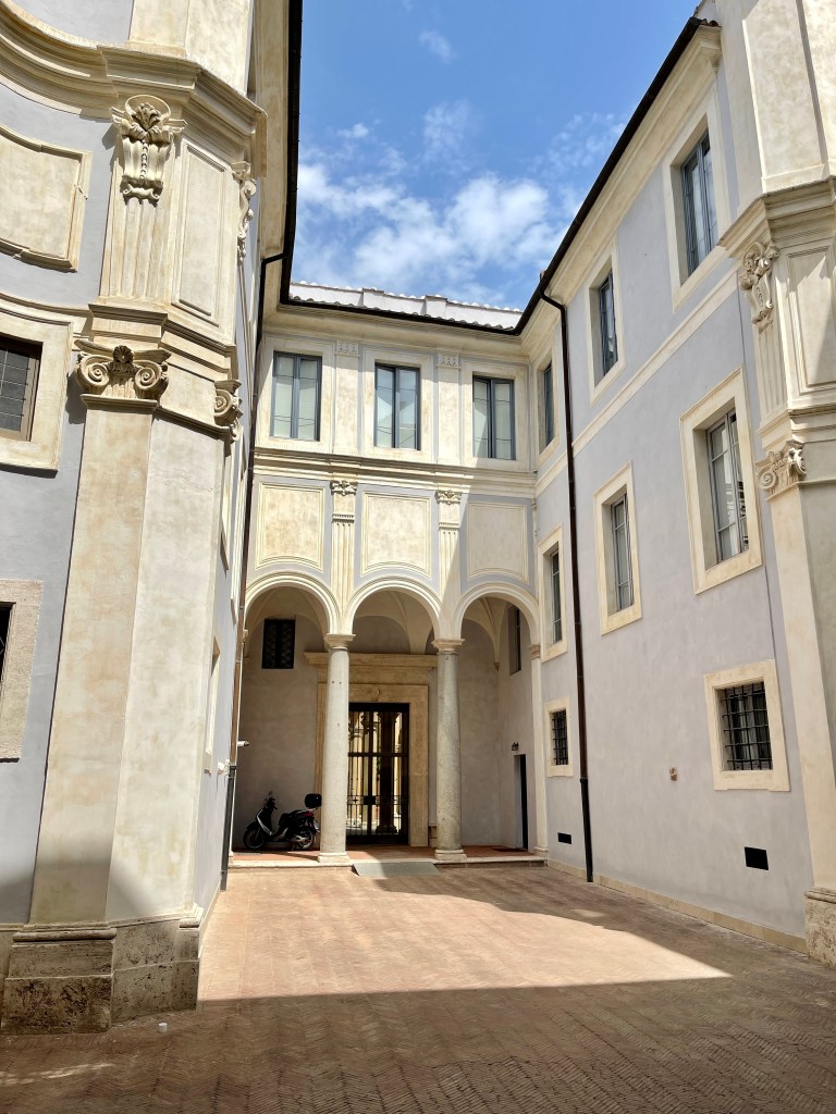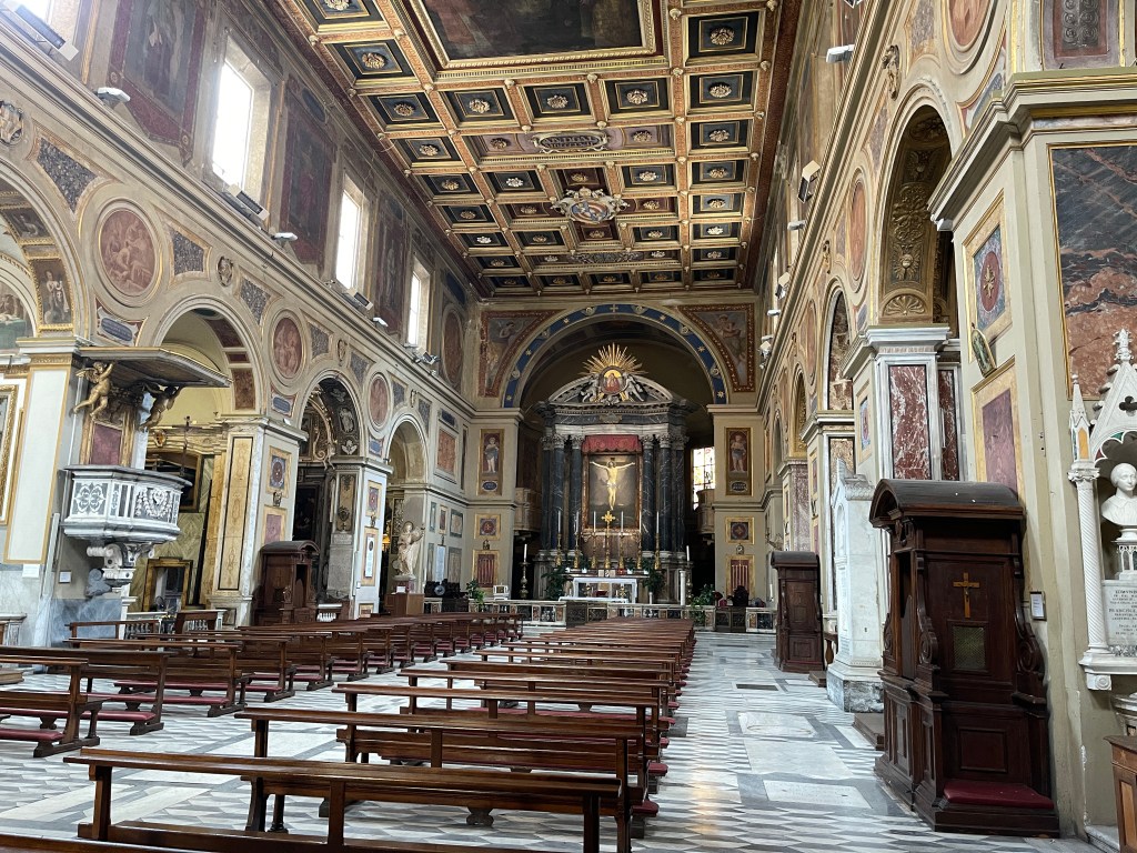 Me encontré esta pequeña iglesia en una callejuela casi sin salida, mientras caminaba sin rumbo cerca de la Piazza Navona. Data del siglo XV. Tiene el estatus de Titulus (que distingue a ciertas iglesias de la diócesis de Roma que se encuentran ligadas a un cardenal) y que en la actualidad ostenta curiosamente el arzobispo de Santiago de Chile.