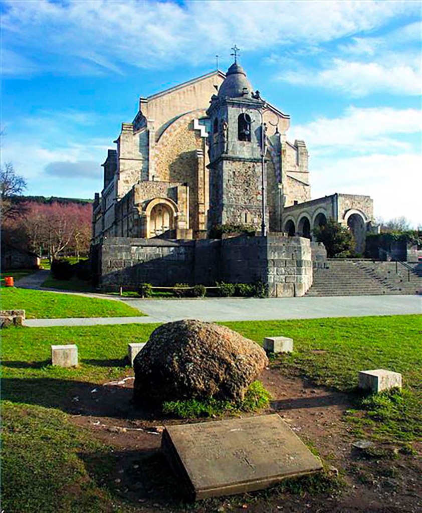 Delante del Santuario hay una simbólica piedra (la leyenda dice que es un meteorito) que es lugar de peregrinación para quienes desean encontrar pareja en breve tiempo. Según la leyenda tan sólo hacen falta 7 vueltas a la piedra para lograrlo. También en el exterior encontraréis 3 elementos que simbolizan la vida de Vizcaya: el ancla representa (la vida marinera); la laya (la vida agrícola) y una turbina de ferrería (la vida industrial).