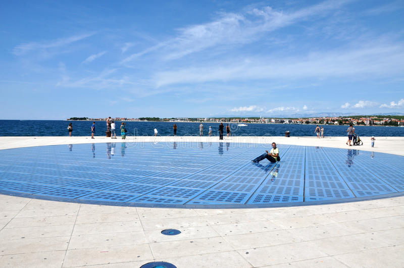 De nuevo el artista Nikola Basic, una vez acabó con el órgano de mar, empezó con esta obra de 22 metros de diámetro y más de 300 paneles de vidrio. Bajo el vidrio, instaló unas placas fotovoltaicas que acumulan la luz del Sol durante el día, y al anochecer se convierte en un espectáculo de luces y colores.