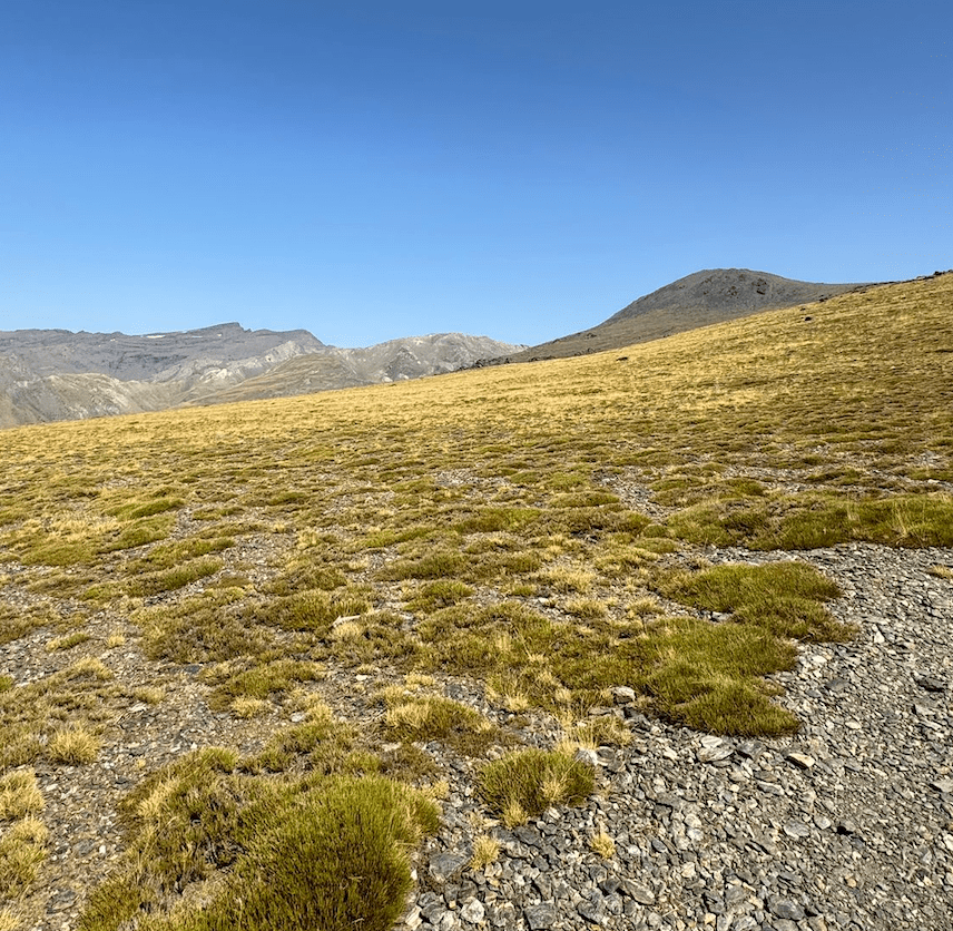 Desde aquí, la ruta hasta el Mulhacén es súper fácil y nada larga, en poco más de 5km y 790m de desnivel (pero muy bien repartidos) desde el Alto del Chorrillo, por un camino marcado por hitos y sin ninguna pérdida, porque está muy pisado, llegaréis al Mulhacén, pasando antes por otro tresmil, el Mulhacén II, a 3360m.