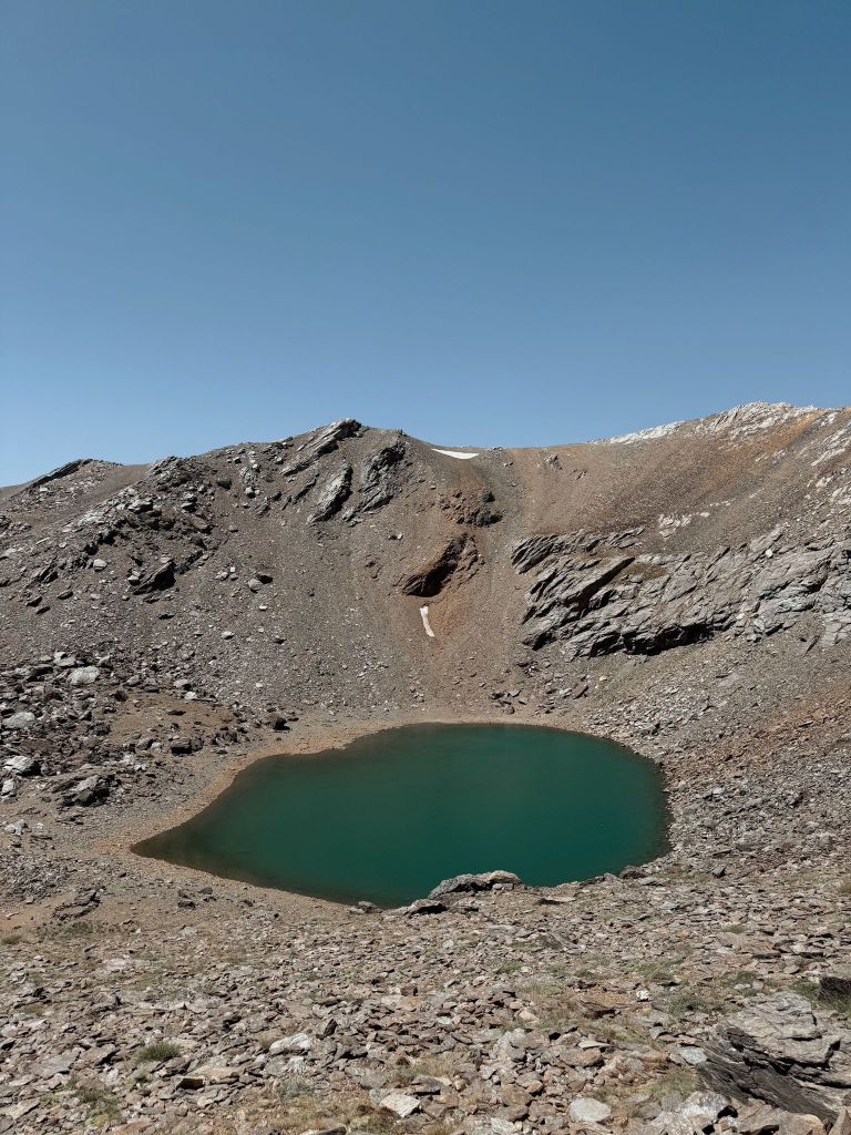 En este punto podéis volver por el mismo sitio, o alargar la ruta de alguna forma: bajando a la Laguna de la Caldera, que se ve desde el Mulhacén, donde también hay un refugio, y después volver por el camino que sale de ella hasta el Alto del Chorrillo.