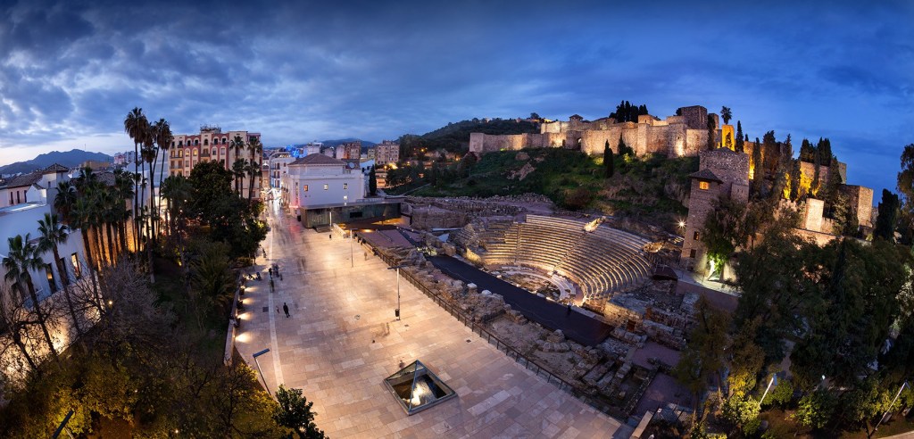 El Tour empezaba junto al Teatro Romano, en la Calle Alcazabilla, el lugar perfecto, pues desde aquí se pueden observar las tres épocas históricas y culturales por las que ha pasado la ciudad: en un nivel más bajo, se encuentra el Teatro Romano, de cuando el Imperio dominaba la península, construido en el siglo I a.C.