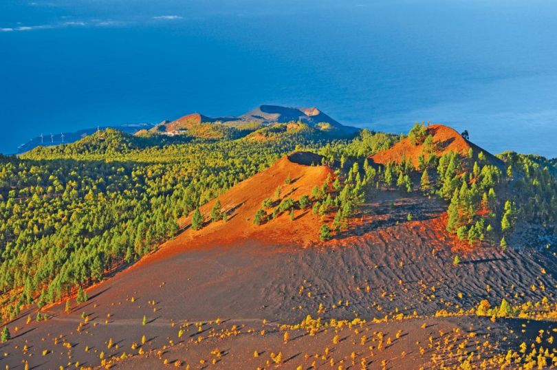 Desde la cima, podrás observar la Caldera de Taburiente desde arriba y, en días despejados, ver las islas vecinas (Tenerife, La Gomera, El Hierro).
