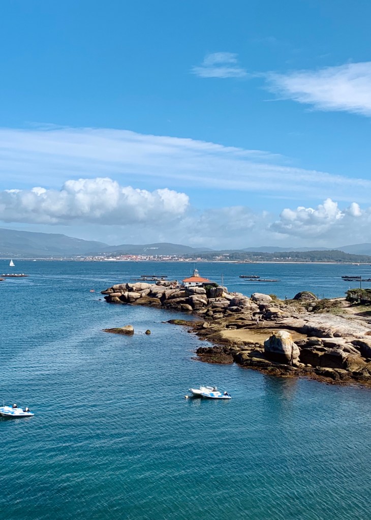 Hoy ha tocado un poquito más de coche, aproximadamente 1h40 desde donde estamos alojados (Ribadavia) para visitar la Isla de Arosa, al norte de Pontevedra.