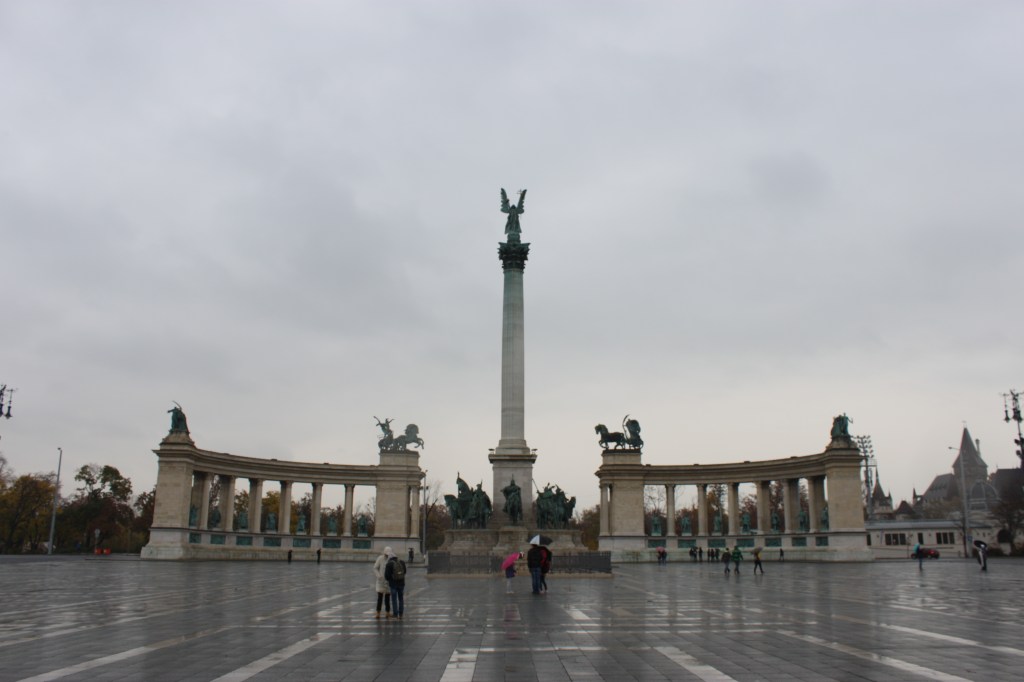 Está situada en un extremo de la avenida Andrássy (con la que conforma parte del conjunto que es Patrimonio de la Humanidad). En el centro se encuentra el Monumento del Milenio con estatuas de los líderes de las siete tribus magiares que fundaron Hungría en el siglo IX y otras personalidades de la historia húngara.
