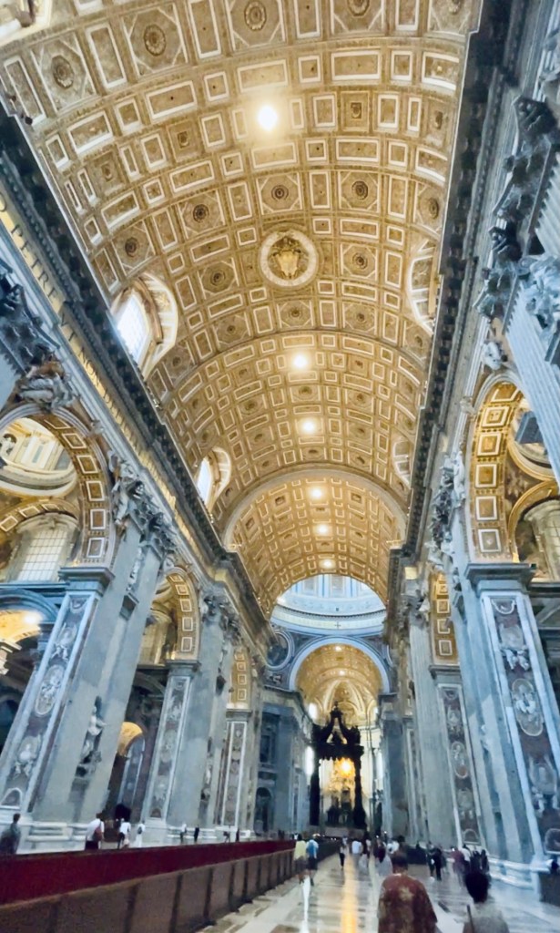 Segundo día por Roma, y aunque solo nos queda uno más, me parece una ciudad por la que uno no se cansaría de pasear. De las cosas sobre las que os hablé en el post de ayer, teníamos pendiente entrar dentro de la basílica de San Pedro, ya que ayer yo iba en tirantes, no tenía nada para cubrirme, y así no permiten entrar. La basílica es brutal, unas dimensiones inmensas (con cúpula incluida mide 193m de altura) y unas decoraciones que dejan boquiabiertos.
