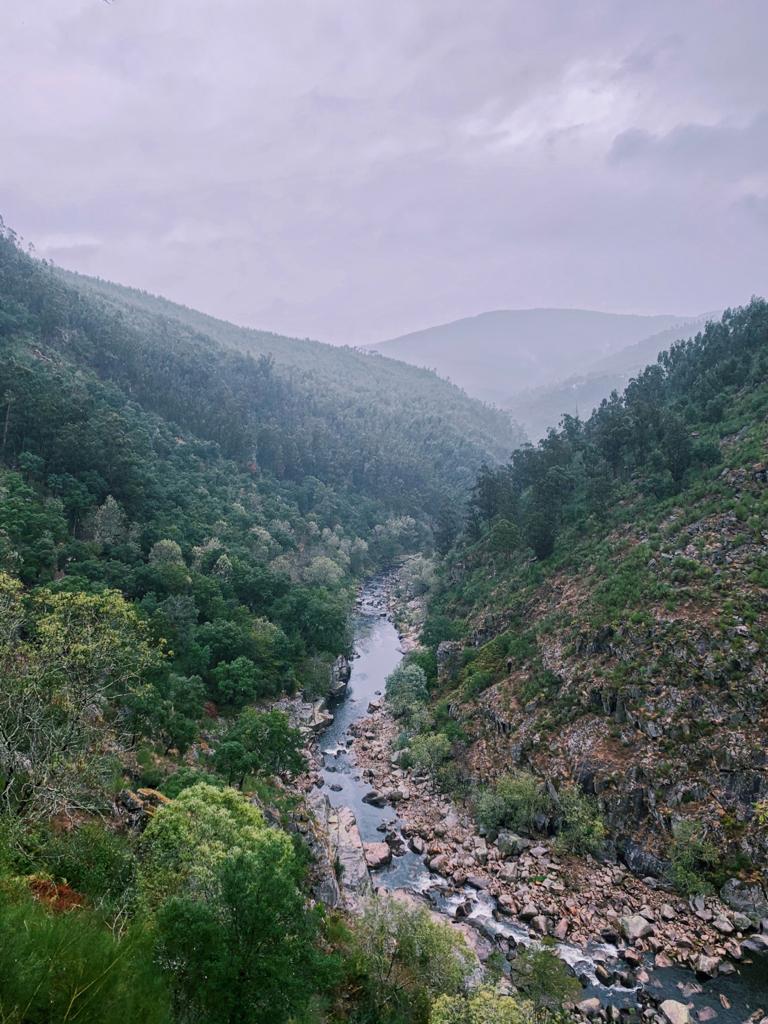 En mi caso, he aparcado en el camping que está pasado el pueblo de Merujal. De ahí parten varias rutas, y he comenzado siguiendo el PR7, que hace una ruta circular por el estrecho valle del río Caima y a la que también llaman la Ruta del Agua (de hecho, durante todo el camino se ve o se escucha agua), puesto que discurre junto a un río y se pasa junto a varias cascadas, entre ellas, la Frecha da Mizarela, que con 60 metros de caída es la más alta del Portugal continental.