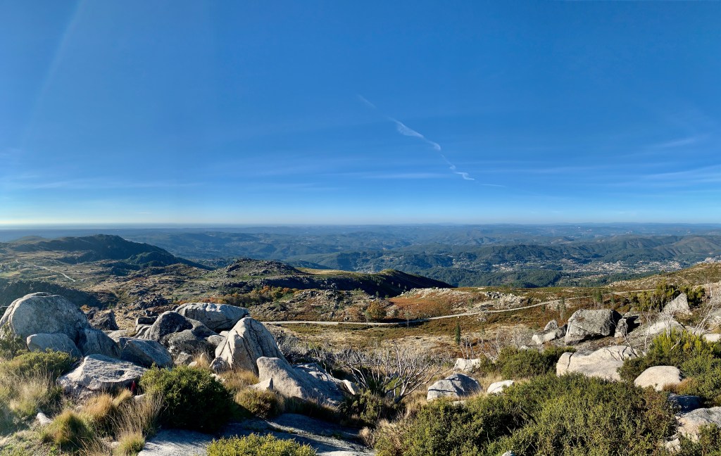 A diferencia del finde pasado, me ha acompañado un cielo impecable sin una sola nube, lo cual ha invitado a hacer una ruta larguita. Y el sitio que he elegido para hoy era perfecto: la Serra da Freita, que pertenece al llamado Arouca Geopark, una región en la que, como podéis ver en su web, están fomentando mucho el turismo activo (la ruta de los Passadiços do Paiva de hace unas semanas también pertenece a él). Y es que es una sierra llena de senderos súper bien señalizados y que se cruzan unos con otros, así que se pueden hacer rutas de diferente distancia, desnivel y dificultad.