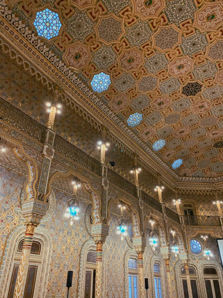 Sin duda la mejor estancia de todo el Palacio, cuyo nombre recibe de su decoración al estilo árabe, y cuya construcción fue inspirada por la Alhambra de Granada. Su objetivo principal ya desde su construcción fue la de impresionar al visitante, cosa que consiguen realmente.