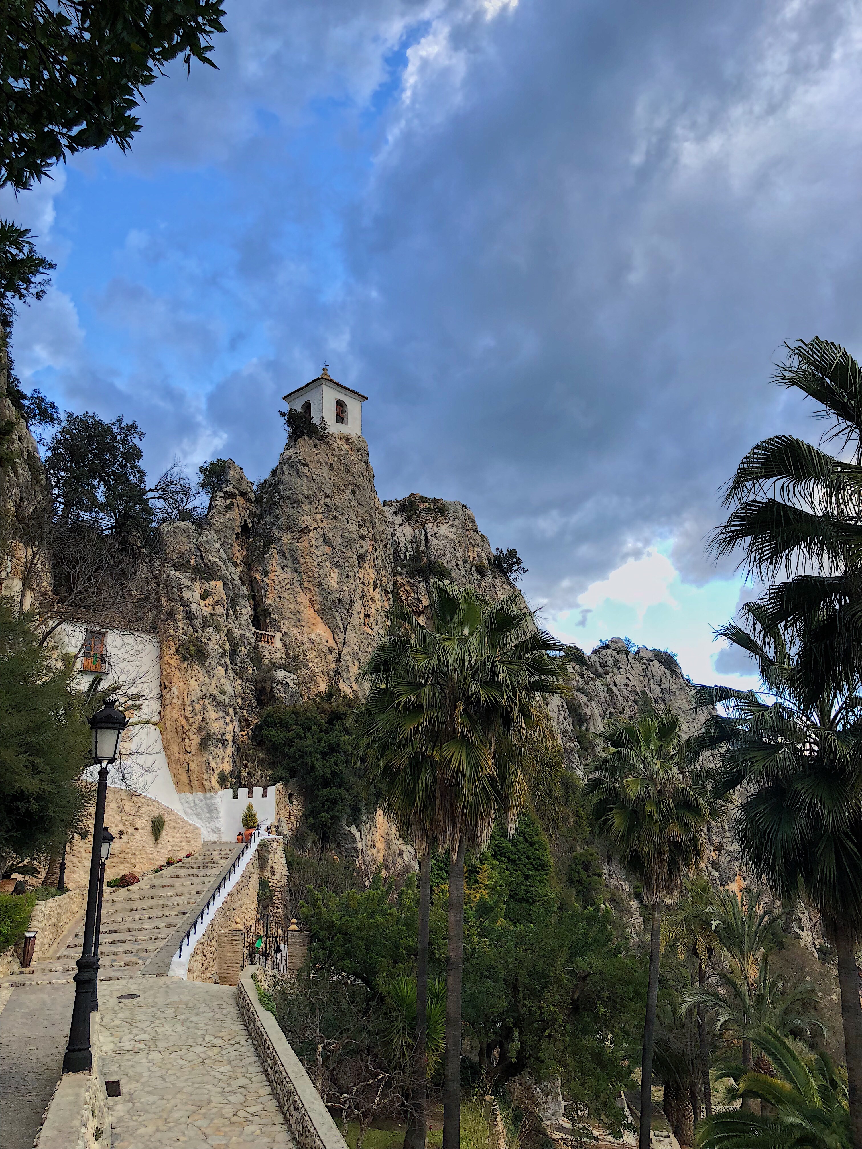 En lo alto del pueblo de encuentra el Castillo de Guadalest, al que no hemos podido entrar porque estaba cerrado (eran las 6 de la tarde, quizás estuviese cerrado por el viento).