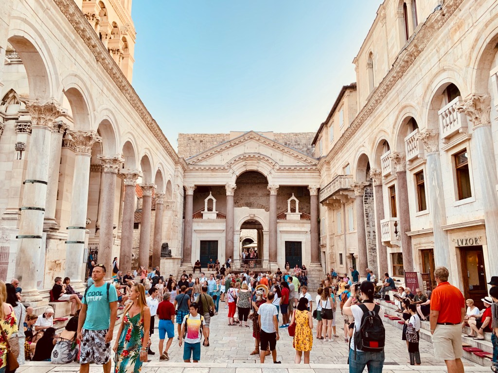 Después he pasado por la Plaza de la República, fuera del recinto del Palacio Diocleciano. Lo que sería la Plaza Mayor de Madrid o de cualquier ciudad Española, rodeada por todas partes de edificios con arcos, en este caso de color rojos. Fue construida en el siglo XIX por orden del alcalde Bajamonti, imitando a la Plaza San Marco de Venecia como muestra de que Split se apoya en la tradición italiana.