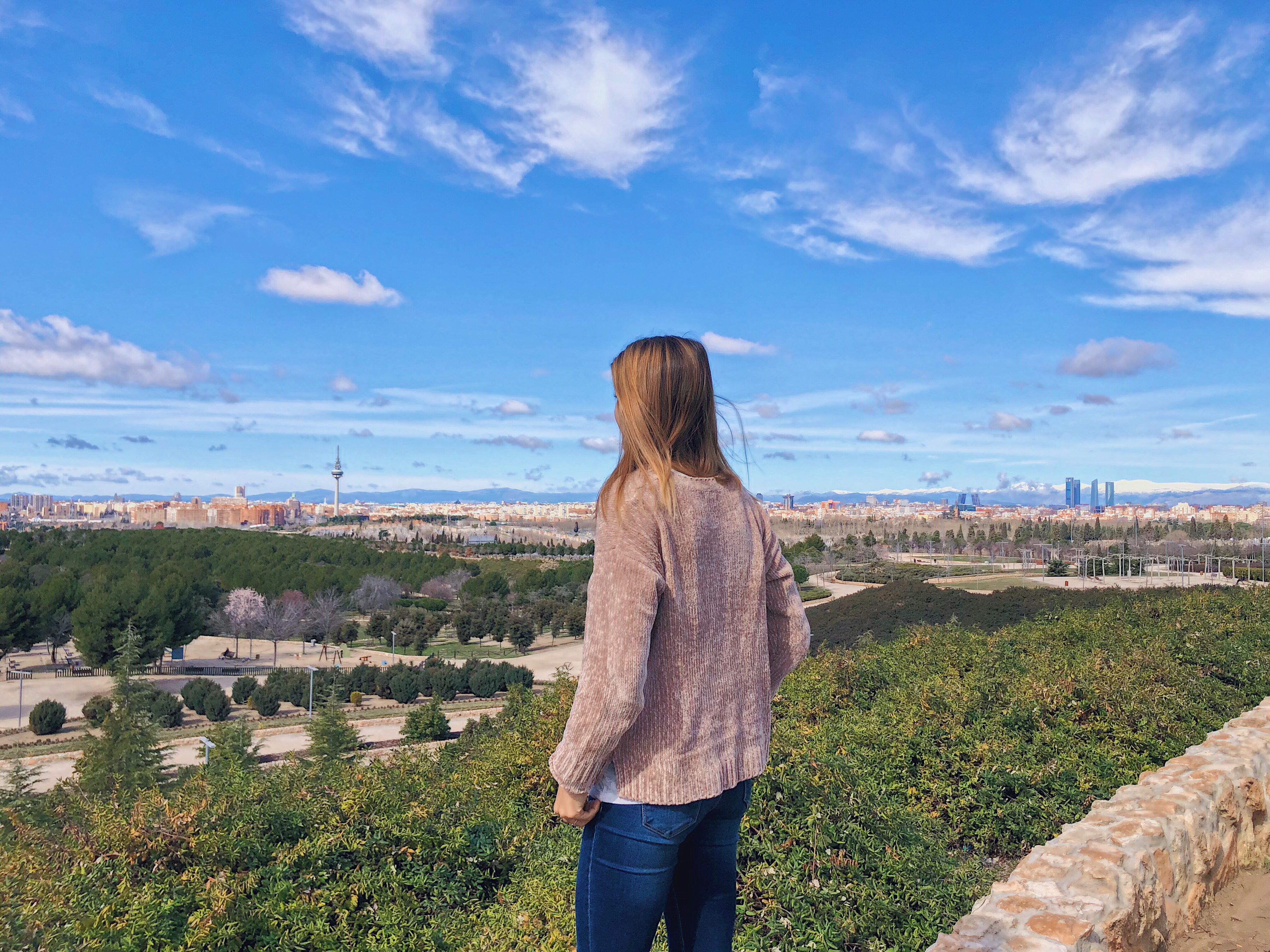 La foto está tomada desde su parte más alta, el mirador, junto al anfiteatro. A la derecha podemos ver donde estuvimos comiendo el finde pasado, las Tres Kio y a la izquierda el famoso Pirulí. A falta de los edificios de plaza España, tenemos en una misma foto el skyline más famoso de Madrid.