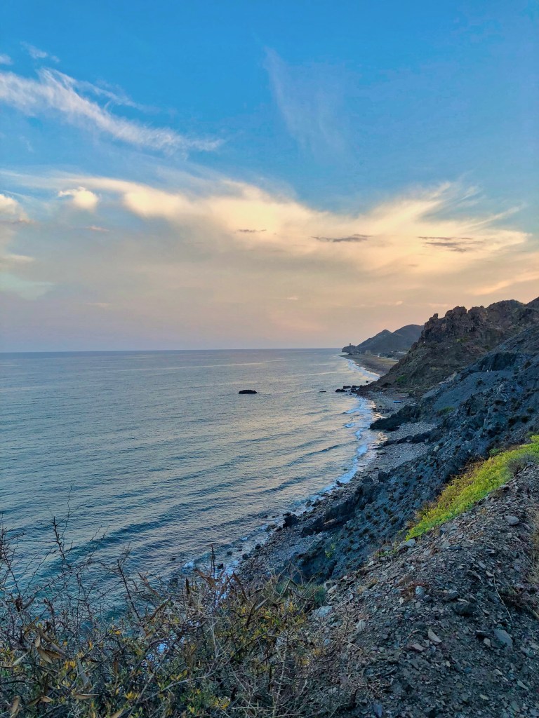 Se trata de un estrecho camino que bordea la línea del mar encima de los acantilados de la costa oeste de Mojácar y que discurre también junto a las montañas que marcan en inicio del Parque Natural del Cabo de Gata.